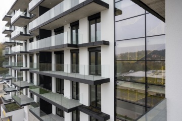 Byty jsou vybavené posuvnými velkoformátovými okny v každé bytové jednotce, prostornými předzahrádkami, velkorysými balkony se zábradlím z odolného skla či střešními terasami s výhledem.