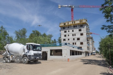 Vzhledem k velikosti jednotlivých podlaží, kde vzniknou pouze čtyři byty, uvažujeme s litím těžkých plovoucích podlah vždy po čtyřech patrech, tedy 16-ti bytech na jeden takt. Tyto práce pravděpodobně začnou v listopadu. Na jednom z objektů již probíhá montáž KZS (kontaktního zateplovacího systému) a druhý objekt bude zahájen za cca 14 dní. Rovněž budou, ve výhledu jednoho až dvou týdnů zahájeny hydroizolační souvrství střechy prvního objektu a poté cca s 14-ti denním odstupem vždy další z objektů.