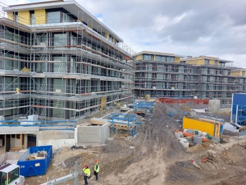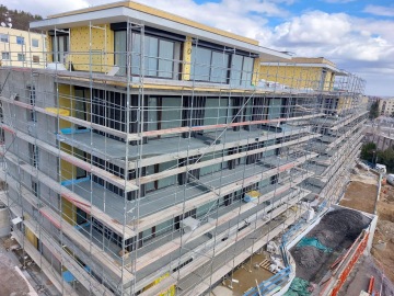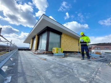 V současné době se realizují inženýrské sítě, železobetonové opěrné stěny, fasády nebo střešní pláště na terasách. Kolegové z PRŮMSTAVu pracují zároveň na zámečnických prvcích na fasádách, provádějí obkladačské nebo malířské práce, montáž sádrokartonových podhledů nebo rozvody TZB v suterénech.